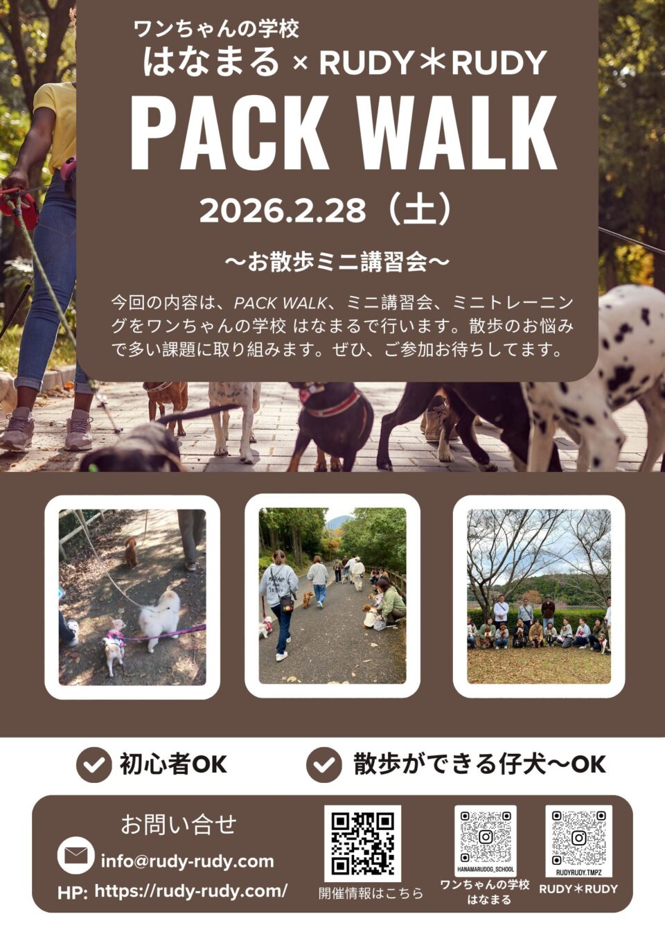 2/28(土)PACK WALK(パック ウォーク)+ミニ講習会 参加者募集~犬友と学び楽しむ~